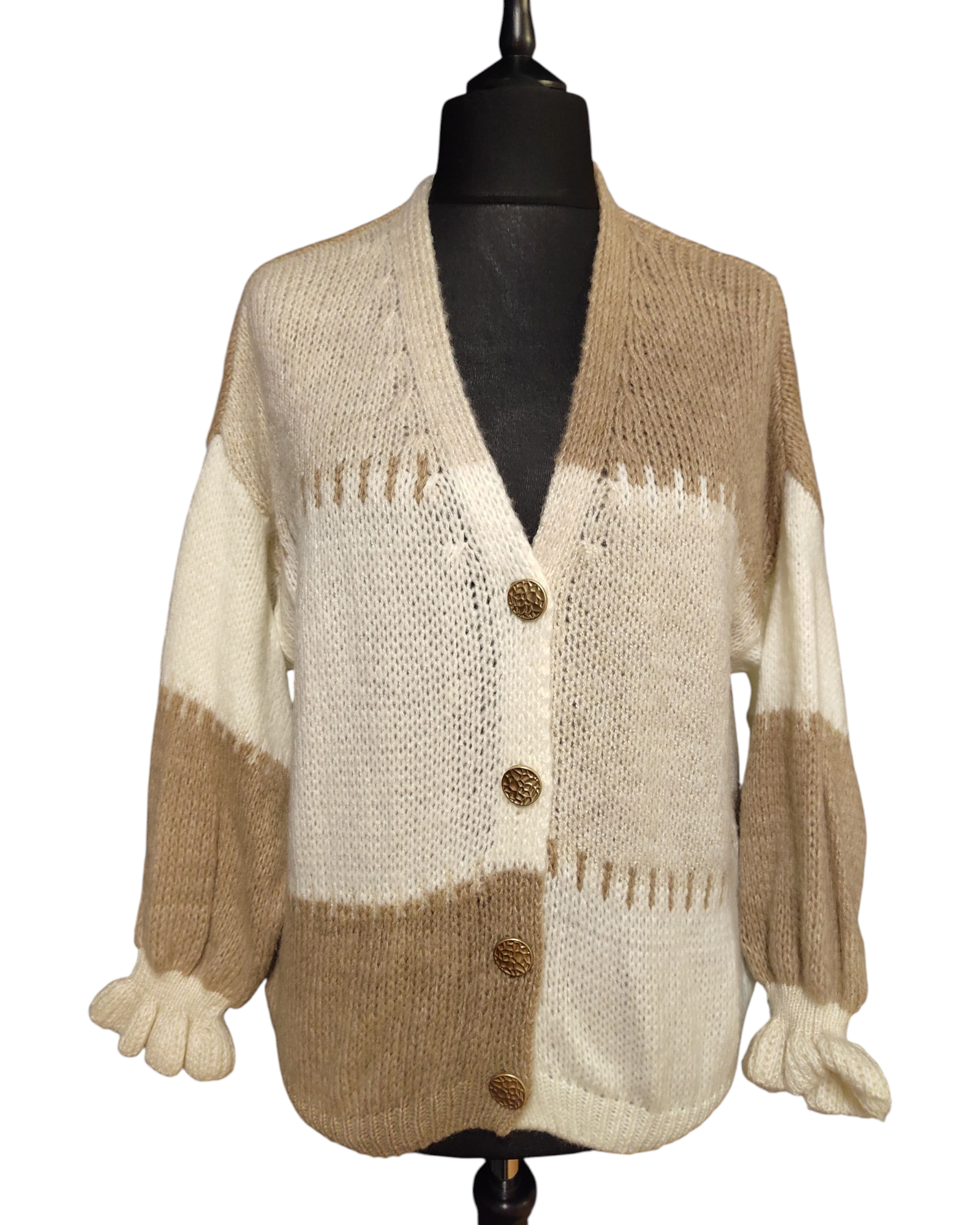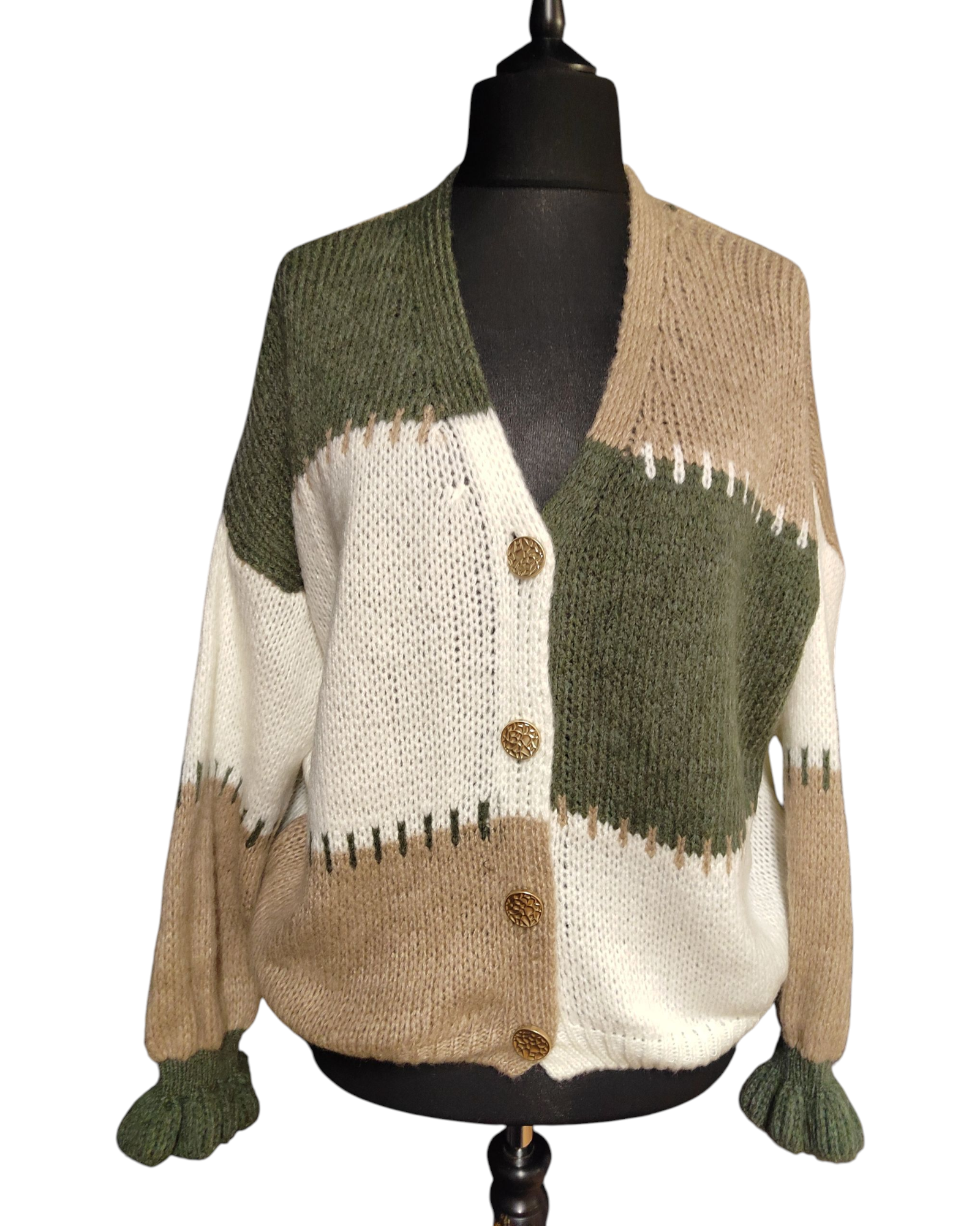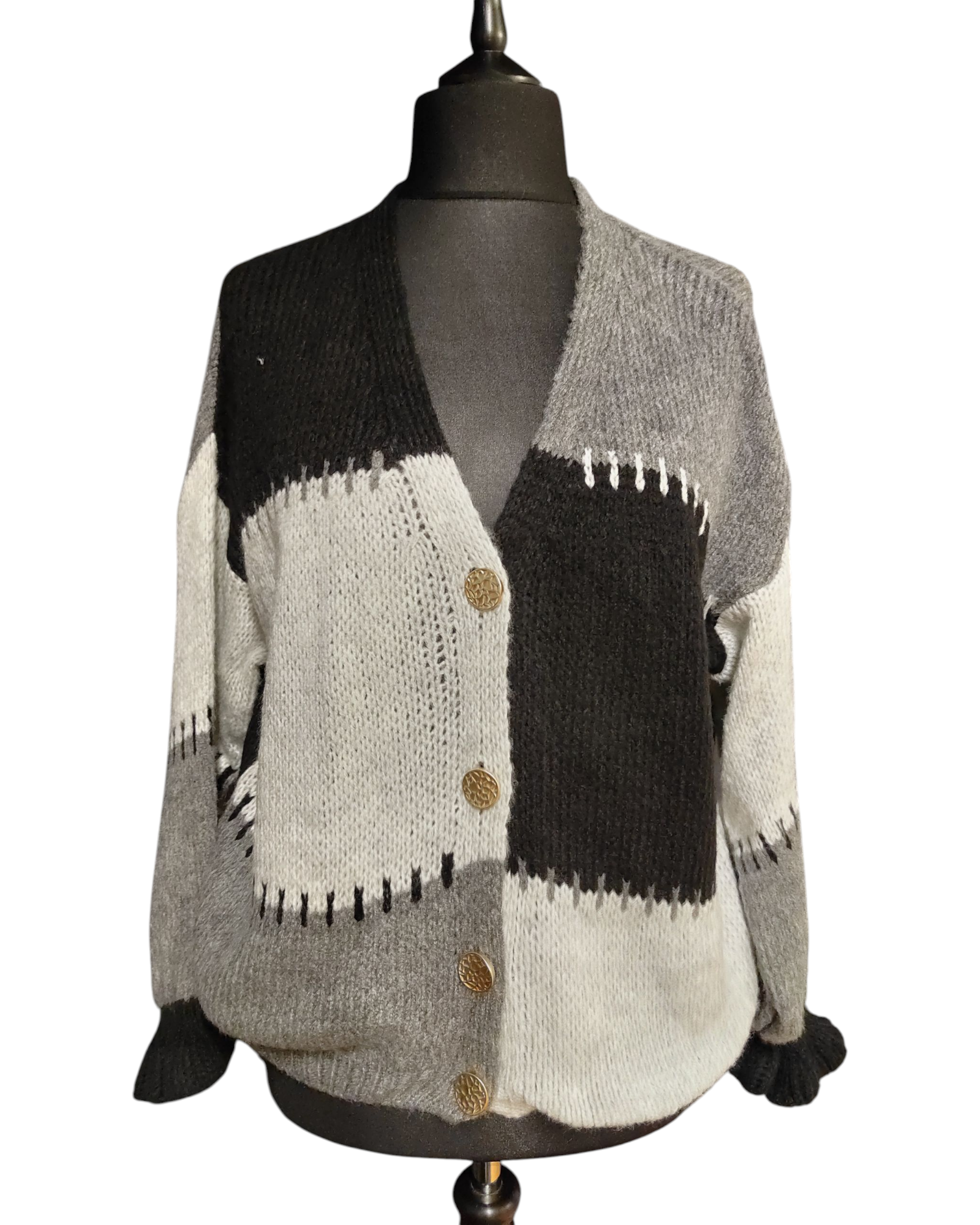 Ce gilet CARLA est magnifique avec ses 4 boutons dorés et ses manches élastiques en froufrou. Fabriqué en Italie avec 15% de laine, il est chaud et confortable avec 65% d'acrylique et 20% de polyester. Il convient aux tailles 38/40 à 46/48 avec ses mesures de 60cm de longueur, 130cm de tour de poitrine et 120cm de tour de taille. Profitez d'un prix inbatable pour cet article de qualité!