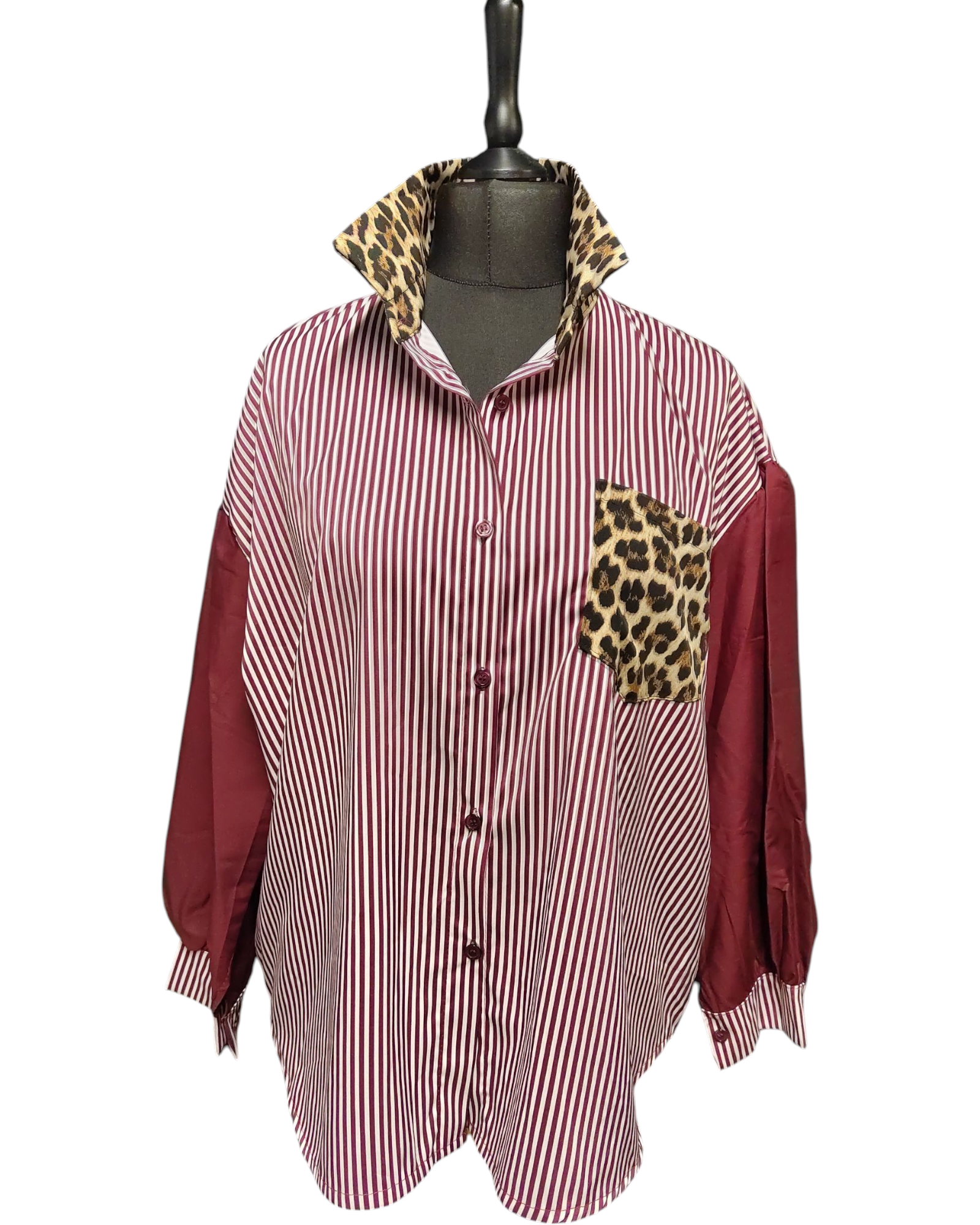 Cette chemise surdimensionnée CLOE en coton et élasthanne est un véritable chef-d'œuvre italien. Avec une longueur de 80 cm à l'arrière et 68 cm à l'avant, elle convient parfaitement aux tailles 40/42 jusqu'au 50/52. Ses rayures à l'avant et son imprimé léopard à l'arrière en font une pièce splendide, tandis que sa poitrine et sa hanche pouvant aller jusqu'à 140 cm offrent un confort inégalé. Fabriquée en Italie.