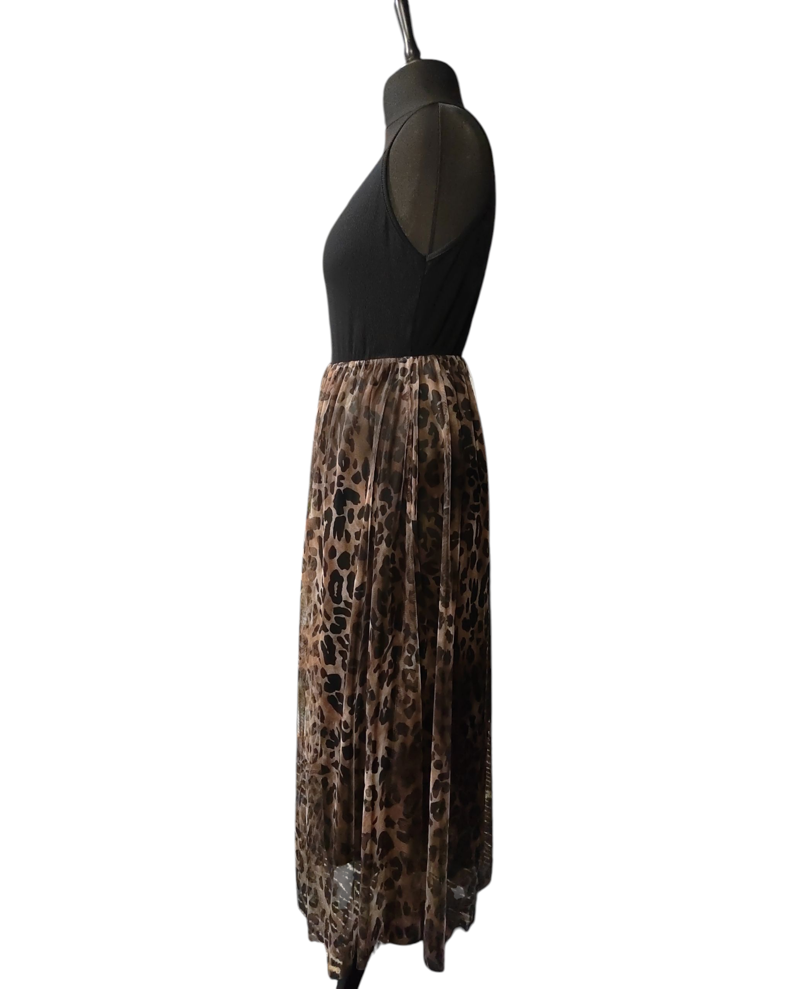 Laissez-vous séduire par JUSTINE (ROBE), une magnifique robe longue doublée, avec une longueur de 127 cm et un tour de poitrine allant jusqu'à 130cm. Sa taille élastique jusqu'à 120cm assure un confort optimal. Son tissu en voile imprimé léopard en fait une pièce unique et élégante. Fabriquée en Italie, elle convient à toutes les tailles, du 38/40 au 48/50. Ne passez pas à côté de cette merveille !
