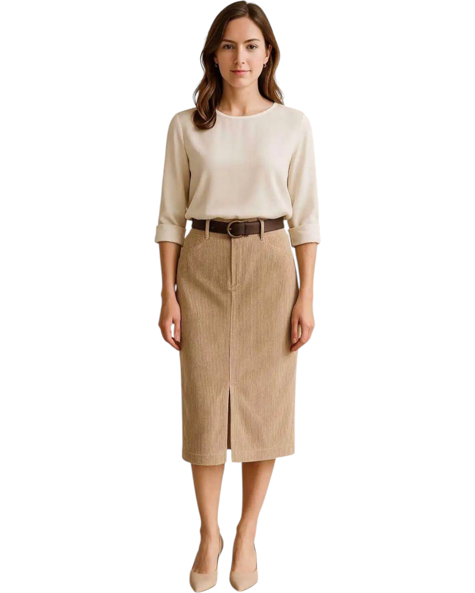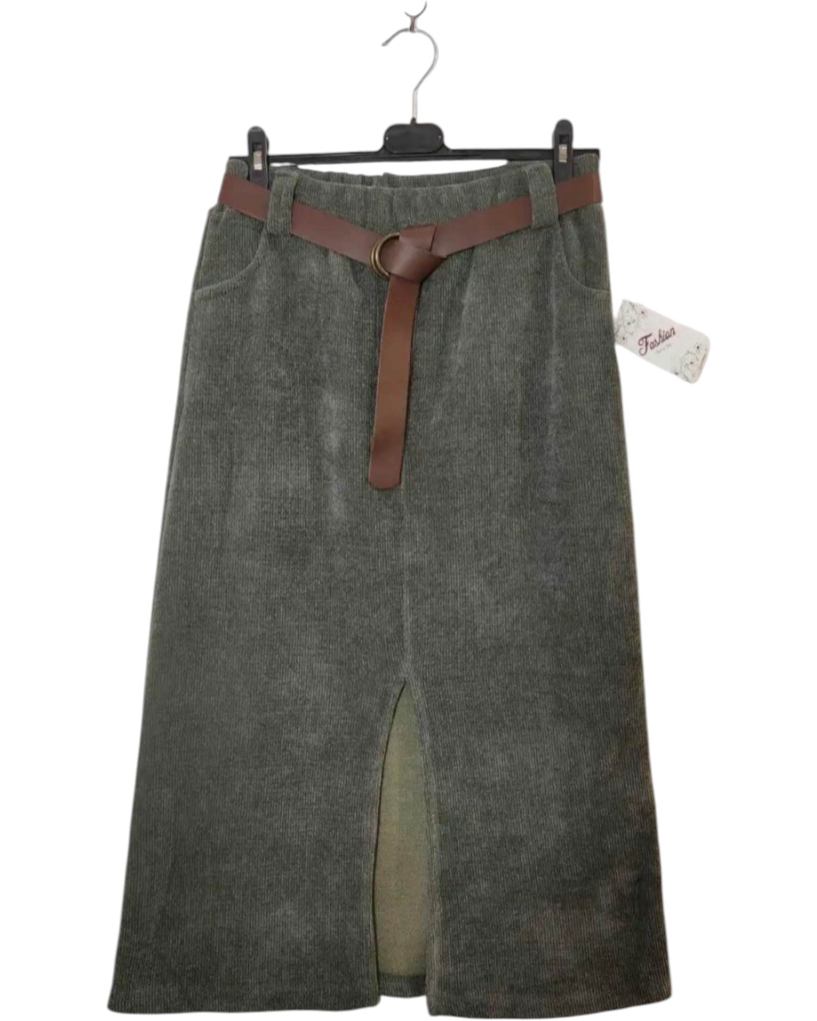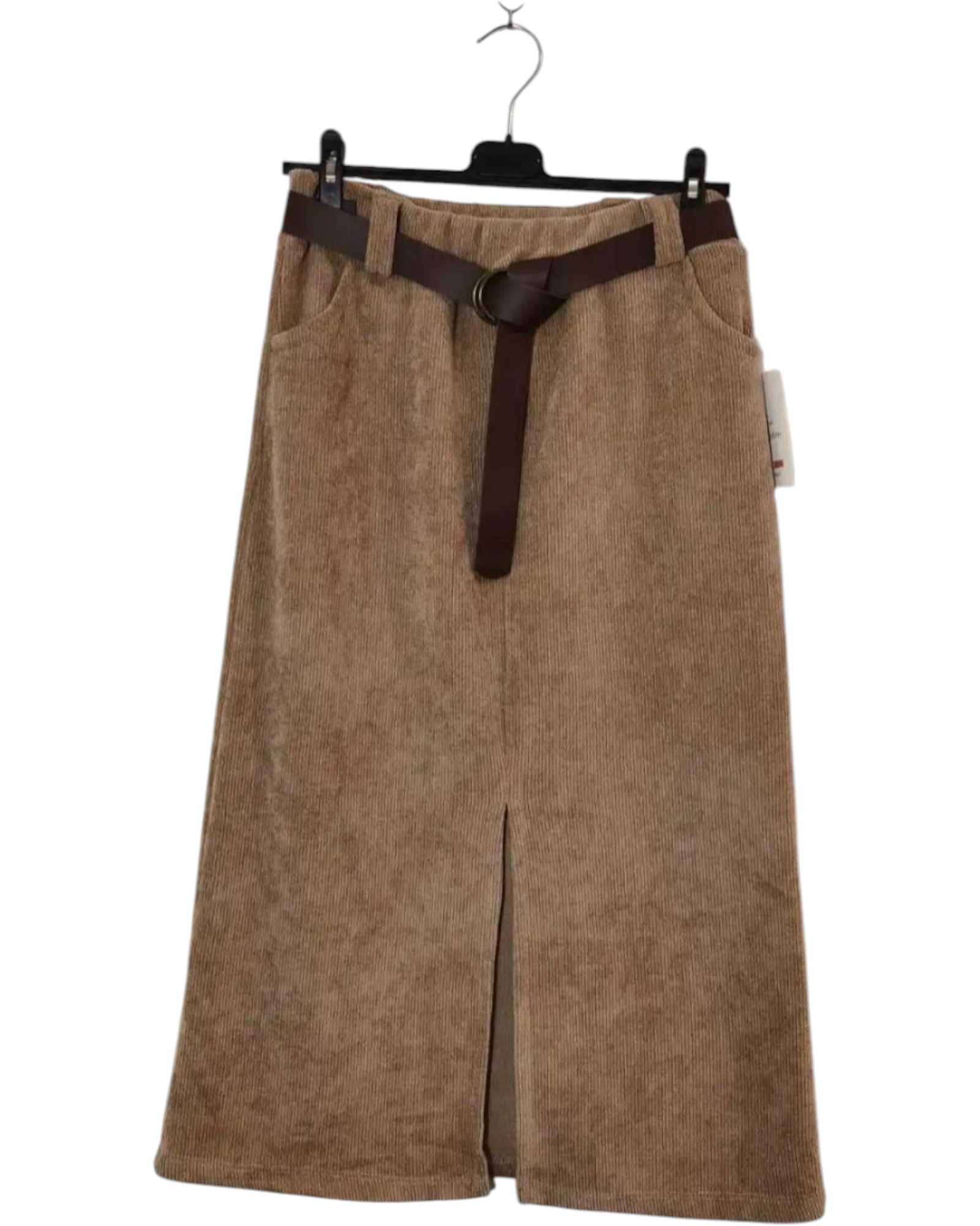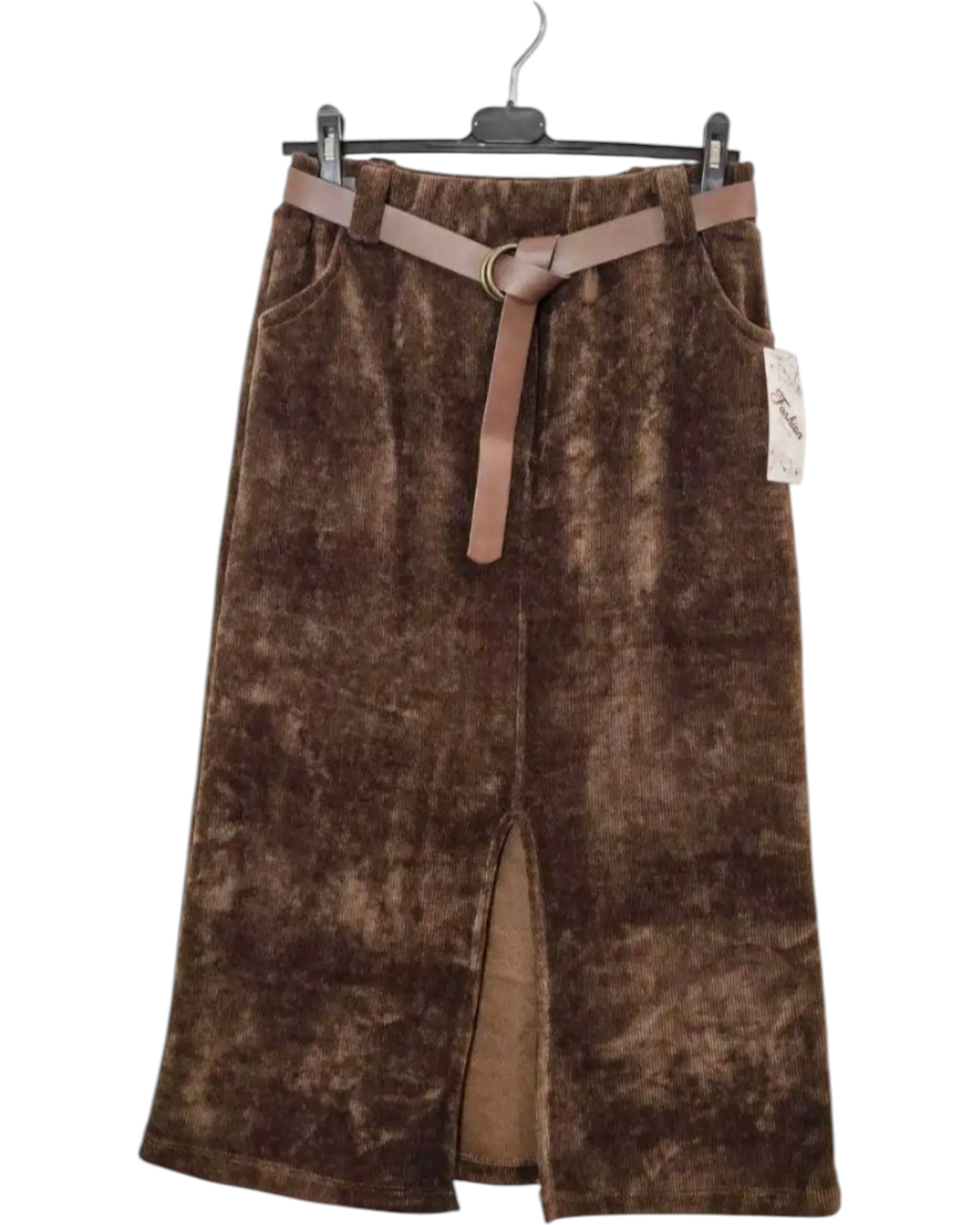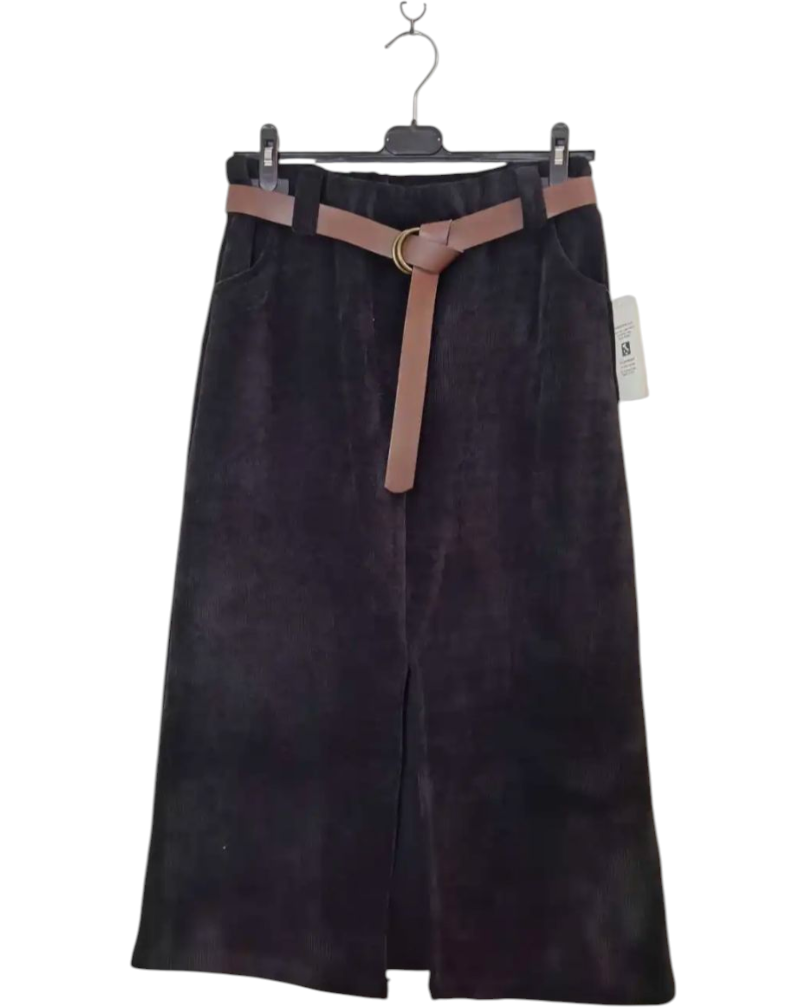 Craquez pour la jupe Justine, une pièce ultra tendance en velours tout doux avec une fente élégante sur le devant.