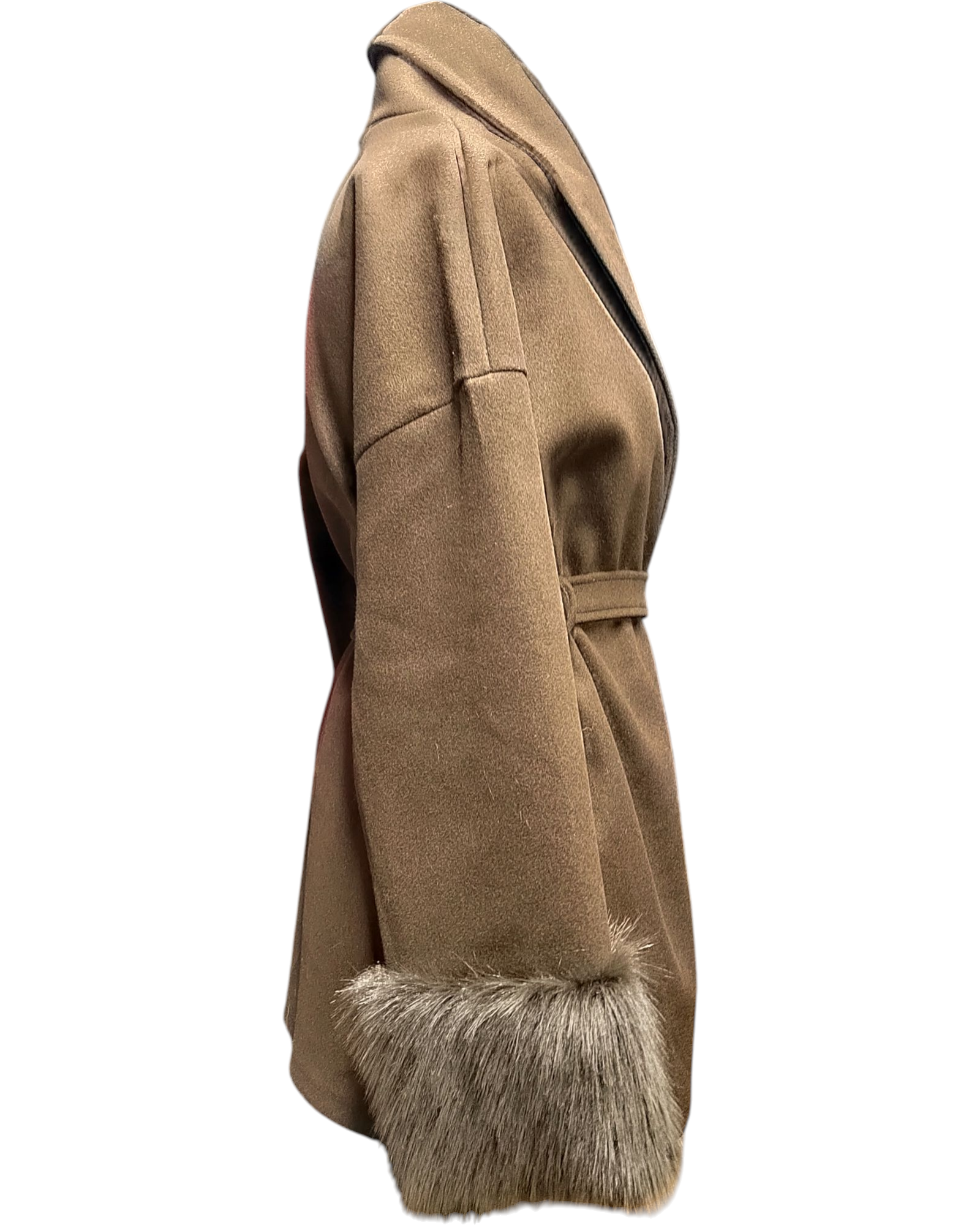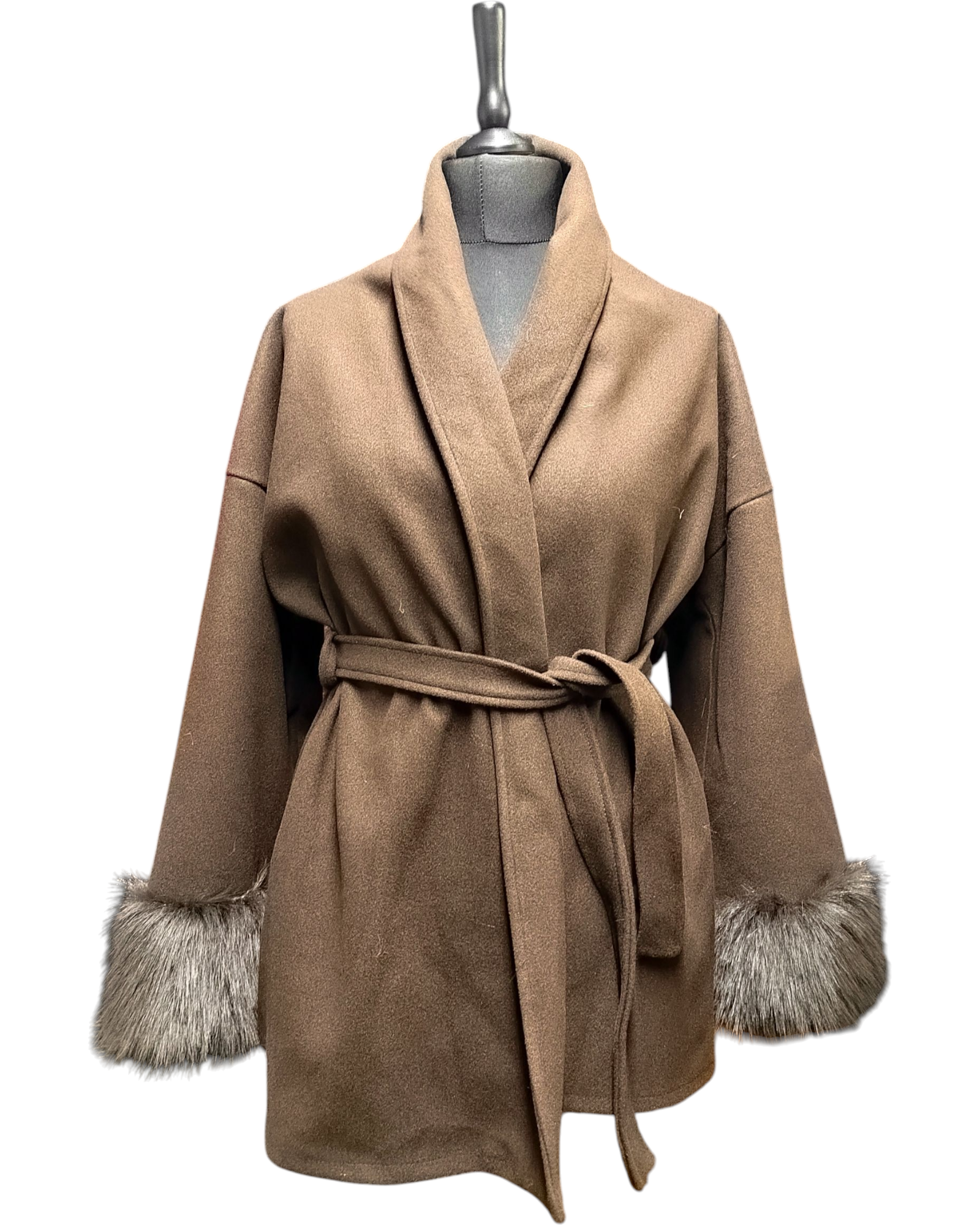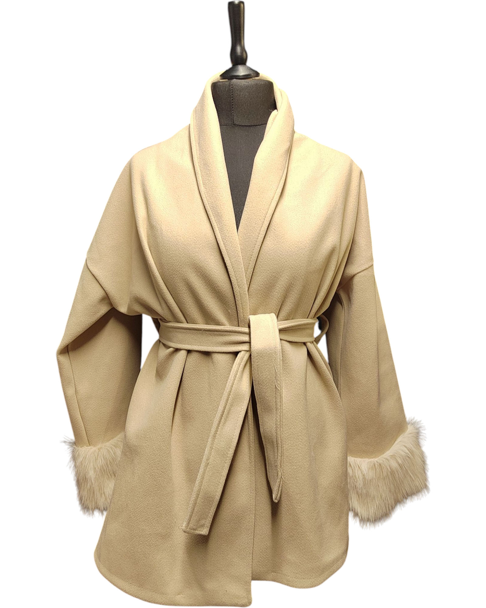 Cette veste LOLITA est à la fois élégante et pratique. Grâce à sa ceinture amovible, vous pouvez la porter selon votre style, que ce soit avec ou sans. Ses manches en fourrure ajoutent une touche de glamour tandis que sa longueur de 76 cm et son tour de poitrine allant jusqu'à 140 cm assurent un confort optimal. Fabriquée en 100% polyester par MADE ITALIA, elle convient à toutes les tailles du 38/40 au 46/48.